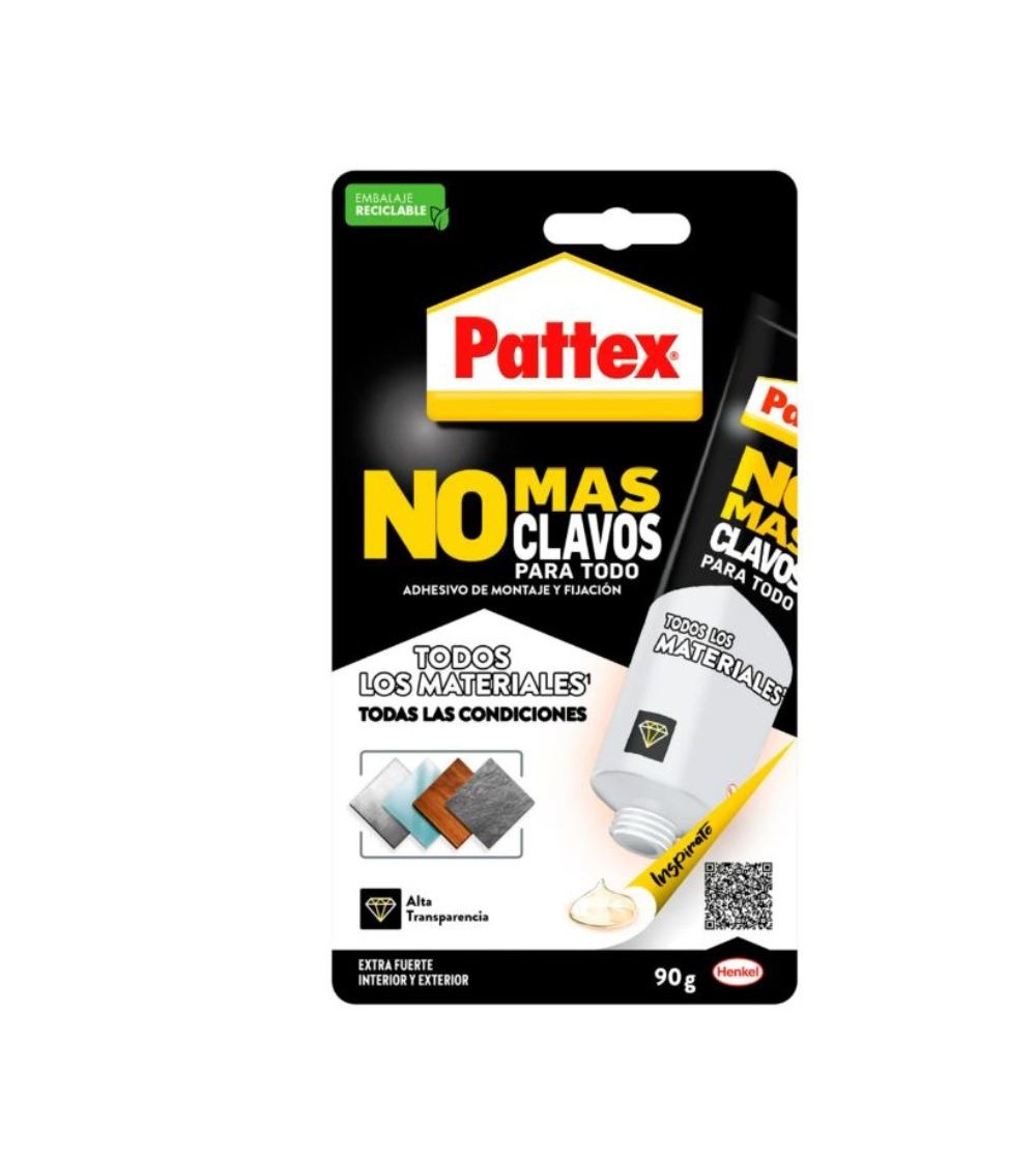 ¿Nunca sabes qué adhesivo utilizar cuando tienes que arreglar algo en casa? ¿Buscas un pegamento transparente que puedas aplicar en múltiples materiales y que garantice unas uniones resistentes? Pattex No Más Clavos Para Todo Transparente es un pegamento multimaterial con fórmula cristal que se puede utilizar tanto en interiores como en exteriores. Este adhesivo de montaje garantiza uniones resistentes en superficies porosas y no porosas y se puede usar como pegamento para plástico, madera, ladrillo, cerámica, azulejos, piedra, metal, vidrio y espejo*.